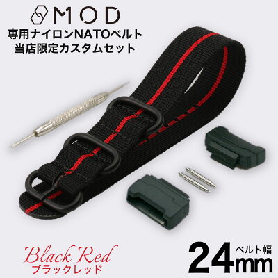 G-SHOCK 対応 ZULU ナイロンベルト アダプター セット ブラックレッド 腕時計 替えベルト バンド 幅 24mm Gショック ジーショック ズールー ナトー NYLON NATO BELT 時計ベルト メンズ カスタム 人気 おすすめ おしゃれ ミリタリー スポーツ アウトドア キャンプ サバゲー